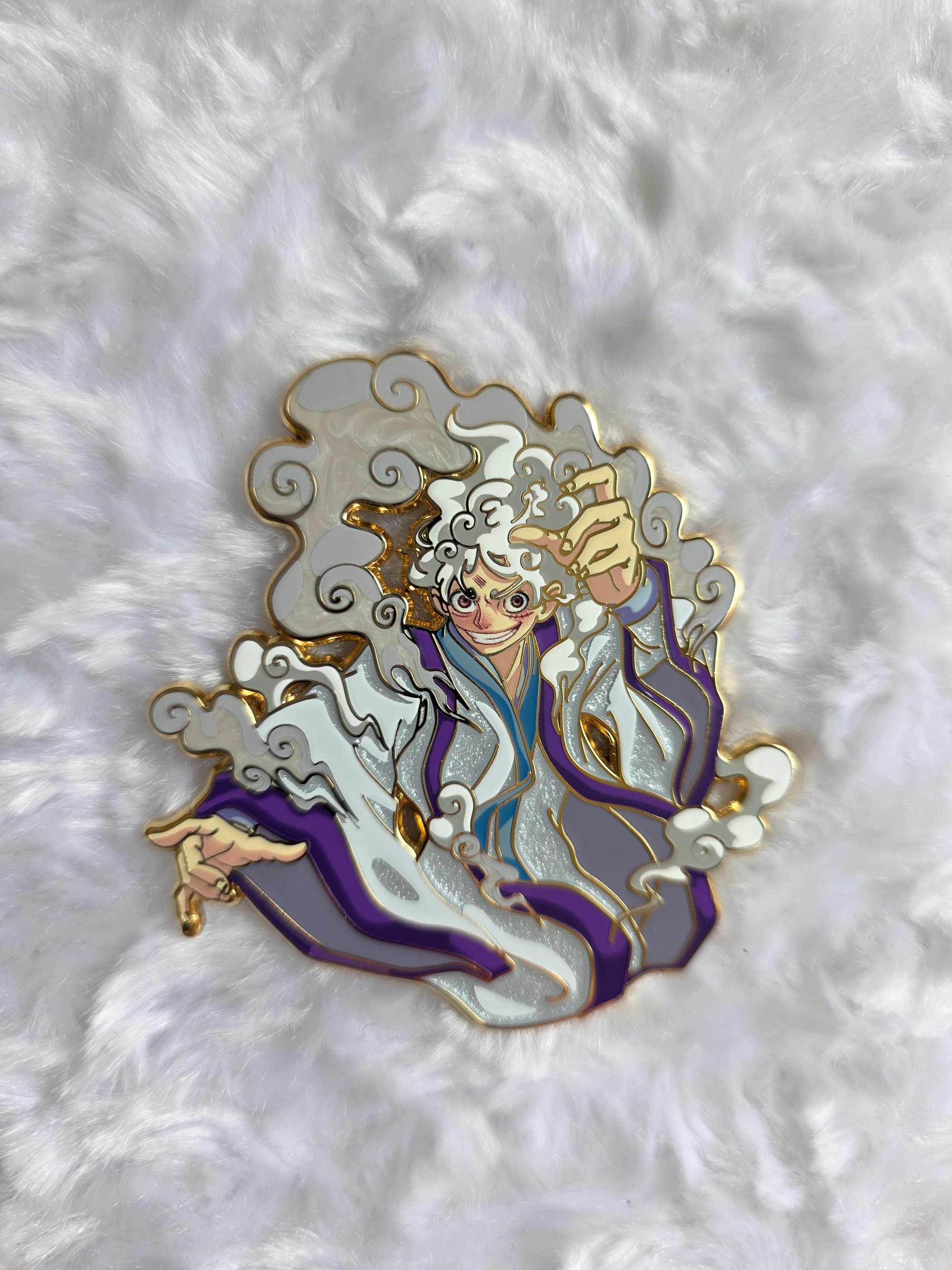 Limited Edition (LE) Gold enamel plating 3" x 2" Diamond effect on white kimono pearl swirl clouds Screen print